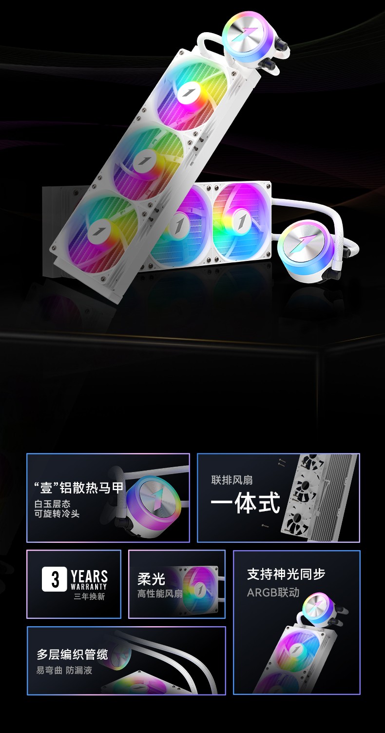 DIY玩乐,有时候也是玩灯。区别淹系列水冷的结构之美,新的澈系列水冷散热器提供了ARGB灯光之美,更为全面的兼容性以及同样强大的构造。倾心傲物的一小撮专业玩家,把你的热爱与汗水MARK上!