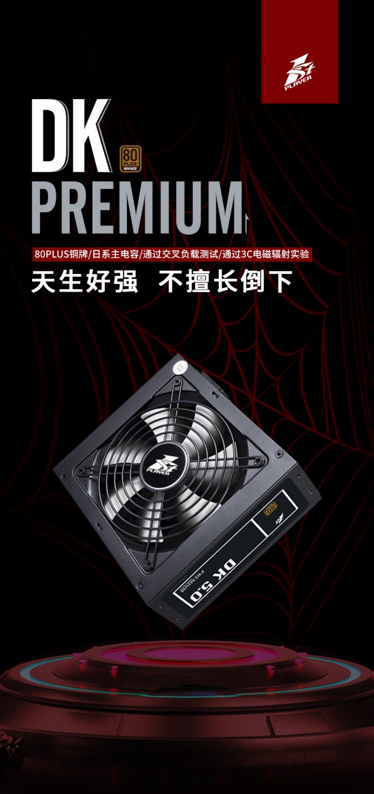 DK PREMIUM 是一款值得精明玩家信赖的高性能电源,摒弃不实用的模组线材设计,将费用侧重于玩家关心的电性上。不仅提供真实的80PLUS铜牌能效,通过双磁放大电路可较好通过交叉负载测试,并且用料满足电压偏离、噪音、效率等评测和3C指标。